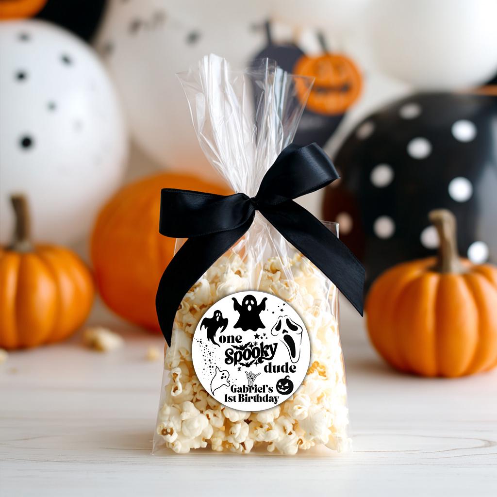 Add a festive touch to your little one’s spooky celebration with these “One Spooky Dude” 2-inch round stickers!Perfect for sealing party favor bags, decorating cups, treat boxes, or using as envelope seals. These stickers are customized with your child’s name and age, making them a fun and personal detail for a **Halloween-themed birthday.